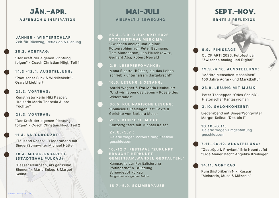 Das Fotofestival Click ART! lädt von 25. April bis 6. September 2026 zu einer facettenreichen Entdeckungsreise durch die zeitgenössische Fotokunst in die Galerie MERKIMA ein.